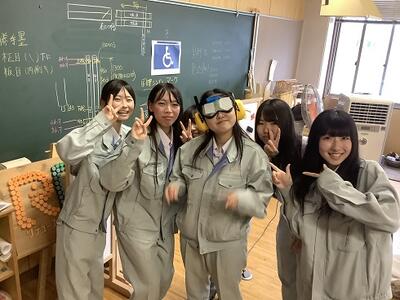 令和6年7月9日(火)5・6校時は3年建築科の総合実習の様子を紹介します。本日の授業では、擬似体験実習を行いました。視覚や聴覚の障害を擬似体験することで、建物内の段差やスロープ等をどのように工夫して設計するべきか、バリアフリーやユニバーサルデザインがどうあるべきか考えるきっかけとなってほしいです。