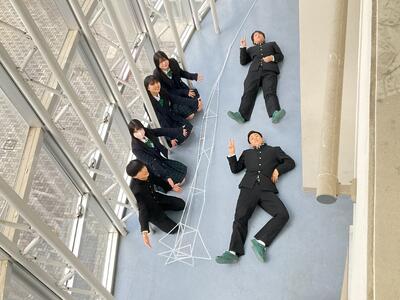 令和7年6月13日(金)3年生 セオドライト測量実習の様子です。班のメンバーと協力しながら、中庭に校章を描きました!