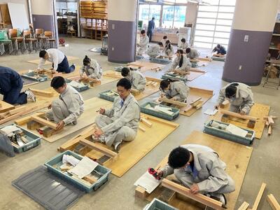 令和6年11月28日(木)講習に真剣に取り組む生徒たちの様子です。技能検定「建築大工」は、木造建築の大工工事に必要な技術を証明するための国家資格です。技能向上・試験合格を目指してみんな頑張れ!