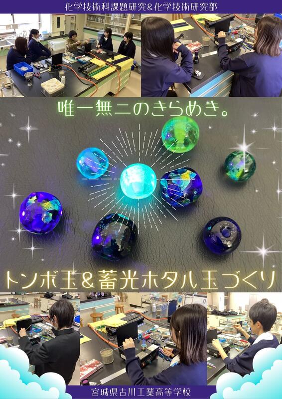令和8年1月9日(金)涌谷町「あとりえboss&Nonko」の後藤のり子様を講師にお招きして、クラフトマン21事業の一環として、課題研究「くがねはなさく班」、化学技術研究部の生徒にトンボ玉作成を指導して頂きました。今回は、蓄光剤を使った蓄光ホタル玉の作成も紹介して頂きました。生徒達は集中して取り組みました。