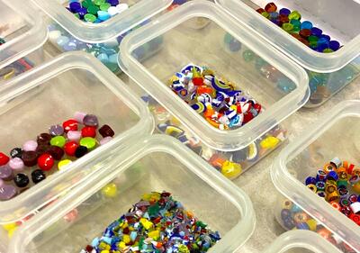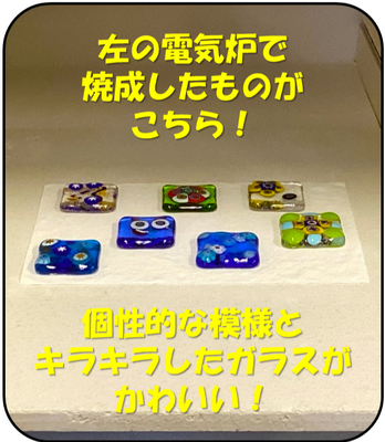 令和6年11月22日(金) 化学技術科3年生の課題研究「宮城の金 原子番号79班」の活動をご紹介します。この班では、名前の通り「金」をテーマに研究をしています。先日は涌谷町を訪れ、砂金を採取したそうです。この日は色とりどりのガラス片と金箔を組み合わせて元となるガラスにのせ、焼成して、キーホルダーを作っていました。