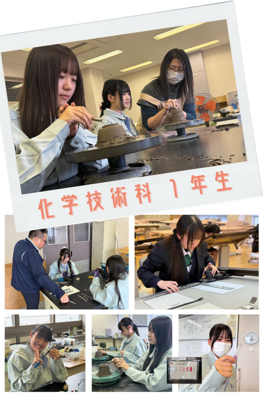 各班に分かれて工業の基礎的な実習を学んでいます。電気系(電気工事)、材料系(陶芸)、環境系、機械系(製図)など、どれも楽しそうな項目ばかりです!実習服も似合ってきましたね。