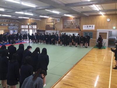 令和7年2月4日(火)化学技術科3年生が化学会(同窓会)入会式を行いました。これから社会に出る生徒たちにエールを贈ってくださいました。同窓会の皆様方、ありがとうございました。