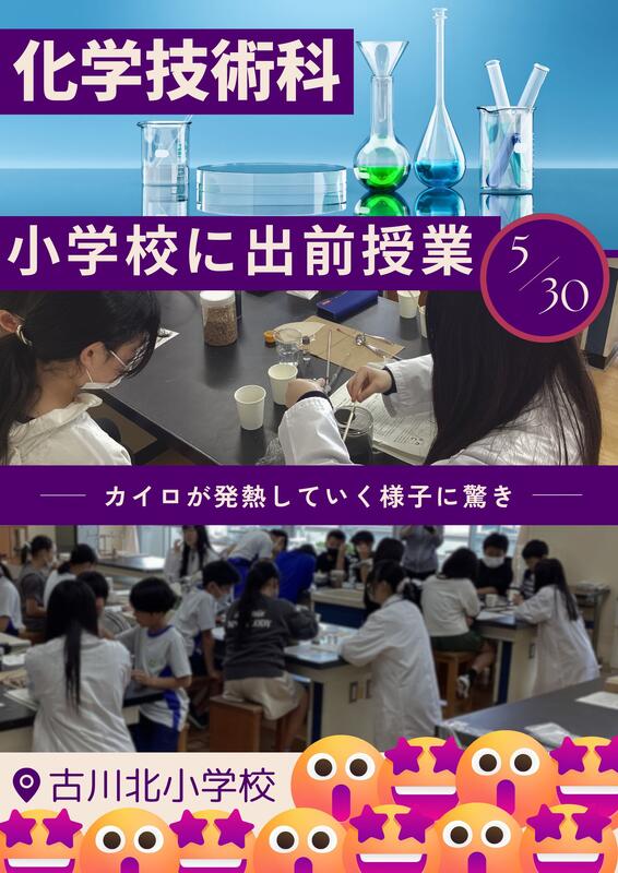 化学技術科3年生出前授業班にとっては、今年度最初の授業で緊張気味でしたが、元気な小学生に助けられながら楽しく実験をすることができました。