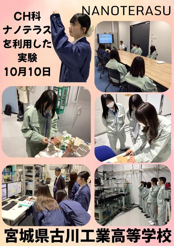 令和7年10月10日(金)仙台市にある最先端の3 GeV高輝度放射光施設「ナノテラス」を利用して実験を行いました。化学技術科3年生は、課題研究の授業で涌谷町から採取した砂金と砂金が採取された砂の中には「目に見えない砂金があるのでは?」という仮説を元に採取した砂を測定しました。