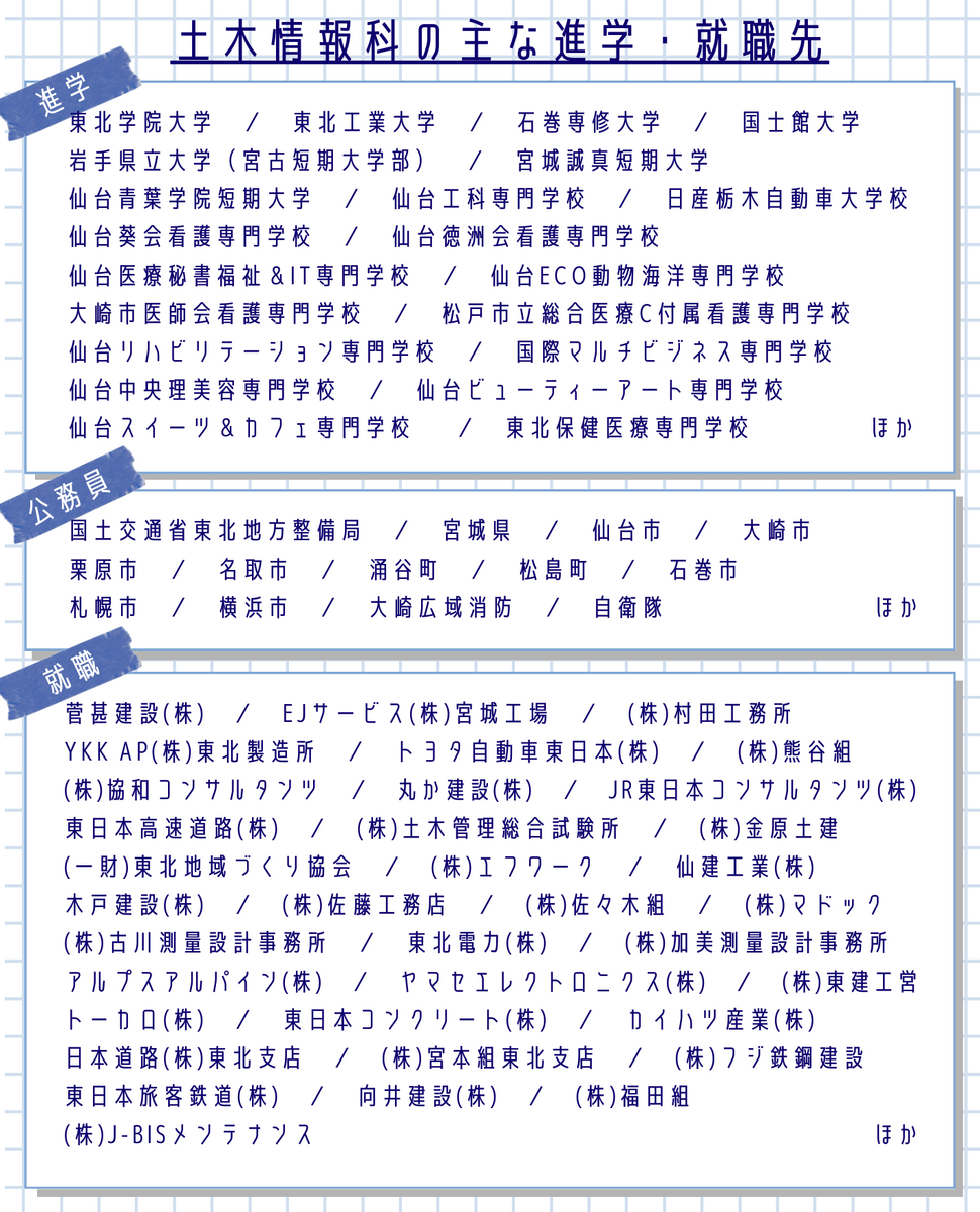 令和7年12月4日(木) 土木情報科1年生を対象に、みやぎ建設産業架け橋サロンを行いました。建設業の魅力やリアルな現場の方の声を生徒に伝え、建設業に興味を持ってもらうことを目的とした行事で、建設業についての話だけではなく、グループでペーパータワーを作ったりして、生徒は講師として来ていただいた事業所の方と交流を深めていました。なかなか聞きにくい質問にも答えていただき、より建設業に興味を持つことができたようです。改めまして、開催していただいた宮城県建設業協会様を始めとする事業所の皆様、素敵な機会をいただき本当にありがとうございました。