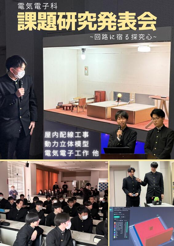 令和8年1月23日(金)課題研究発表会を行いました。無事発表を終えた3年生からは笑顔がこぼれていました。発表を見た2年生のみなさんは、来年の研究に向けて新たな目標やアイデアを思い描くきっかけになったのではないでしょうか。