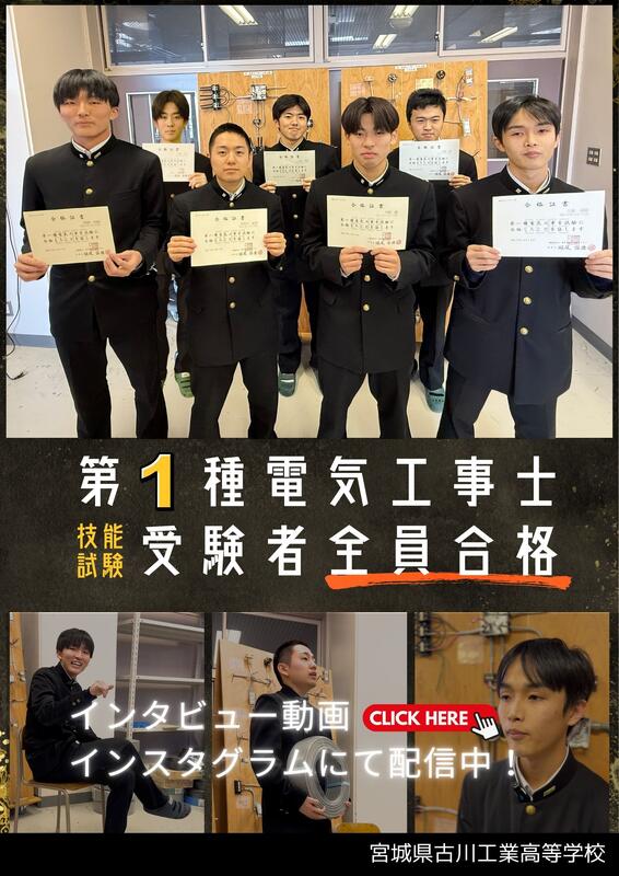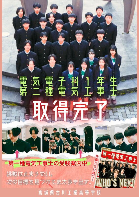 電気電子科3年生の生徒が、難関資格である第三種電気主任技術者試験に見事合格しました!日々の学習の成果が実を結んだ結果です。今後のさらなる活躍を期待しています!