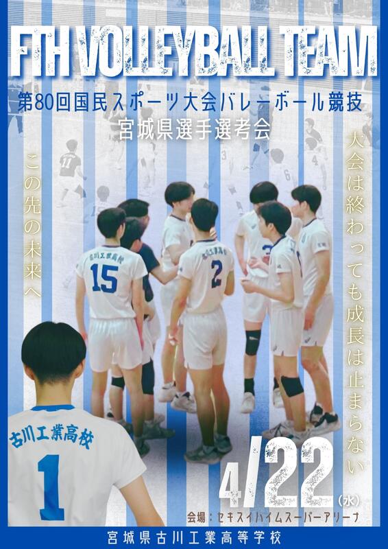4月22日(水)に国スポ選手選考会兼県選手権大会が宮城県総合体育館で行われました。結果は準々決勝で仙台大明成高校に敗退し、ベスト8でした。県総体に向けて頑張ります。
