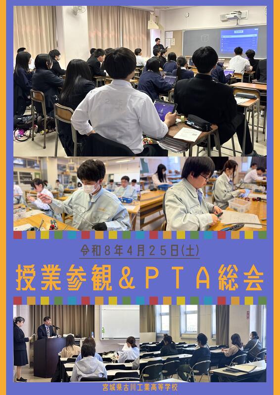 令和8年4月25日(土) 授業参観とPTA総会を行いました。保護者の皆様にご来校いただき、5校時の授業を参観していただきました。その後は総会・学年総会・クラス懇談会を行い、保護者の皆様と教職員が直接顔を合わせるこの特別な機会に、本校の教育について改めてご協力をお願いいたしました。保護者の皆様、ご来校いただきありがとうございました。