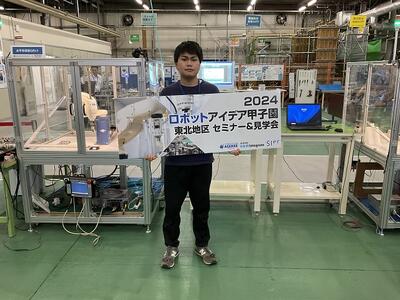 令和6年8月24日(土)エイジェックグループ能力開発センター仙台校にて、ロボットアイデア甲子園 セミナー&見学会が行われ、本校機械科から1名が参加しました。産業用ロボットを見学し、「どのような活用方法があるか」についてのアイデア提案書を提出しました。審査を通過した場合、10月に行われる東北大会に出場します。