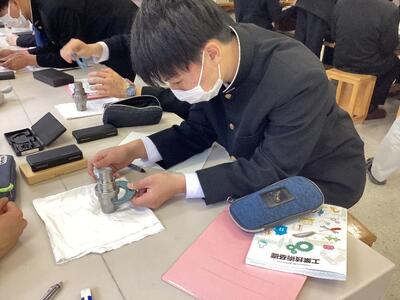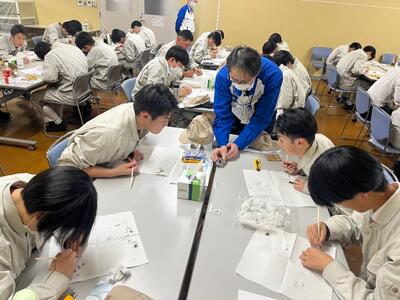 令和6年4月24日(水)株式会社アイシン様の技能五輪チームがご来校くださり、機械科2~3年生の希望者を対象に、旋盤及びCADの実演と、技能指導をしていただきました。最初にデモンストレーションを見学し、無駄のない動きと、素早い手さばきに見入っていました。生徒からは「ものづくりへの意欲が高まりました。今後の競技大会に生かしたい。」との声がありました。株式会社アイシン様、ご協力ありがとうございました。