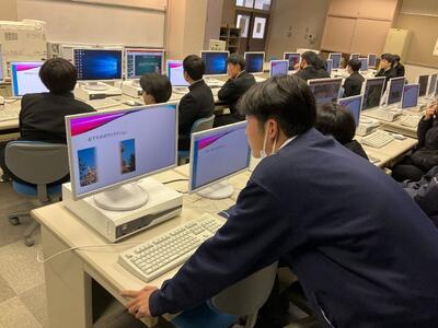 今日の工業情報数理ではパワーポイントの使い方を学びながら、自己紹介のプレゼンテーション資料を作成しました。1人1人が集中して資料作成を行っています。個性豊かな作品がたくさんできたようでした。