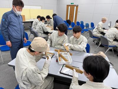 令和6年12月23日(月)株式会社アイシンのアイシン学園技能五輪チームから技術指導をしていただきました。指導していただいたのは、旋盤・機械製図・移動式ロボットの3職種で、普段は体験することが出来ないハイレベルな技術に生徒たちは目を輝かせていました。本校のOB選手や宮城県出身の選手、同じ工業高校出身の指導者の方など、生徒たちに親身になって指導していただき、とても有意義な時間となりました。株式会社アイシン様、誠にありがとうございました!
