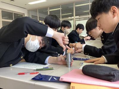 令和7年4月15日(火)機械科1年生の実習オリエンテーションを行いました。初めての実習でドキドキしながらも、生徒同士で協力してノギスとマイクロメーターを使った材料計測を行いました。これから実習頑張っていきましょう!