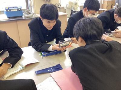 機械科3年生の課題研究のLEGO班の様子です。LEGO班では、まず自分たちで作りたいものを探し、その動きのプログラムを作り、実際に動かしてみるという活動をしています。みんな友達と作りたいものを探しながら、楽しく制作に取り組んでいました。