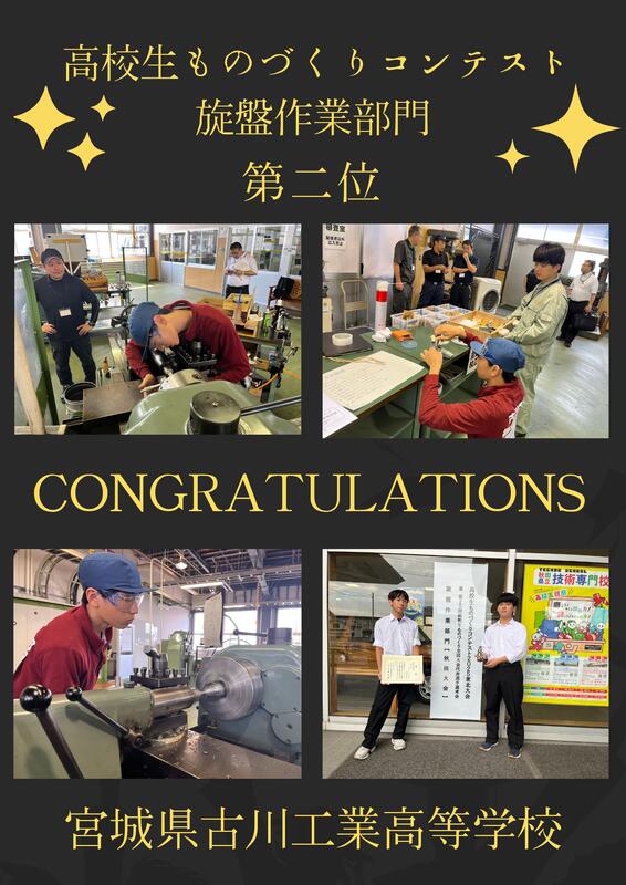 令和6年10月26日(土)高校生ものづくりコンテスト宮城県大会「旋盤作業部門」が、宮城県立仙台高等技術専門校で行われ、本校からは2名の選手が出場しました。結果は機械科2年の佐々木 亮が第5位、機械科1年の菊地 泰喜が見事優勝し、来年度に開催される東北大会への切符を手にしました!応援ありがとうございました!