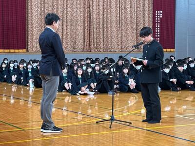 また、最後に生徒会長から校長先生へ交通安全宣言を行い、交通安全への意識を再確認しました。