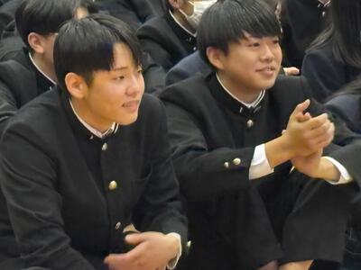 令和7年4月10日(木) 体育館で、各部活動から1年生に向けて、部活動紹介を行いました。各部活動工夫を凝らし、時には一発芸も交えつつ、活動内容や技を披露しました。1年生は、部活動紹介パンフレットを携帯にダウンロードし、それを見ながら部活動紹介を楽しんでいました。まだ入る部活動に悩んでいる1年生も、今回の部活動紹介でかなり心を動かされたのではないでしょうか?3年間頑張れる、自分にぴったりの部活動を見つけてくださいね!
