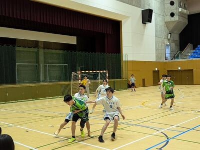 | みなさんは、ハンドボールという競技を知っていますか?ヨーロッパではサッカーと肩を並べるくらい人気のあるスポーツです。ハンドボールの魅力は、「走る・跳ぶ・投げる」という運動の3要素をすべて満たしているところだと言われます。ハンドボールの試合中はジャンプシュートや倒れこみながらのシュート、ステップシュートなど人間離れした大迫力のシュートがみられます。他にも、スカイプレーと呼ばれる空中でパスを受け取ったらそのままシュートするプレーなどテクニック面でも注目を浴びる場面がいくつもあります。ゴールキーパーは、シューターの選手が魅せるハイスピードのシュートを体を張りながら死守します。大迫力のシュートを受け止めるゴールキーパーの動きは、ハンドボールを観戦している方の注目を浴びること必至です。緊迫した空気のなかで度々みられるファインプレーは魅力的といえます。また,ディフェンスは身体接触が許されているので、格闘技的な要素も色濃く、闘争心を掻き立てられる競技でもあります。 現在ハンドボール部は、1年生16名、2年生13名、3年生11名の40名で活動しています。高校入学と同時に始める部員がほとんどなので、普段の練習では、ハンドボールの基礎トレーニングや体力アップのトレーニング、筋力アップのトレーニングなど、体作りをメインに行っています。 是非、伝統あるハンドボール部へ入部し、ハンドボールという競技を楽しみながら充実した高校生活を送りましょう! |