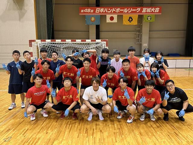 ▼宮城県ハンドボール競技ジュニア強化大会▼ トヨタ自動車東日本レガロッソ宮城の選手と記念撮影 |