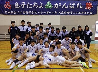 横断幕にある【息子たちよ、がんばれ】には、たくさんの方々の思いが詰め込まれています。家族、OB、地域の方々、学校関係者など。全ての人の【がんばれ】を力に変えて、日々成長していける部活動です。卒業生の進路先も実に豊富で、地元から県外における企業への就職だけでなく、バレーボールをさらに極めるために関東方面への大学、またはクラブチームを持っている企業へ進んだ実績もあります。ぜひ、興味を持っていただければ幸いです。心より入部お待ちしております。