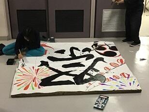 | 1 祭の字を3年生部員が一人一画ずつ書いていきます。 | |