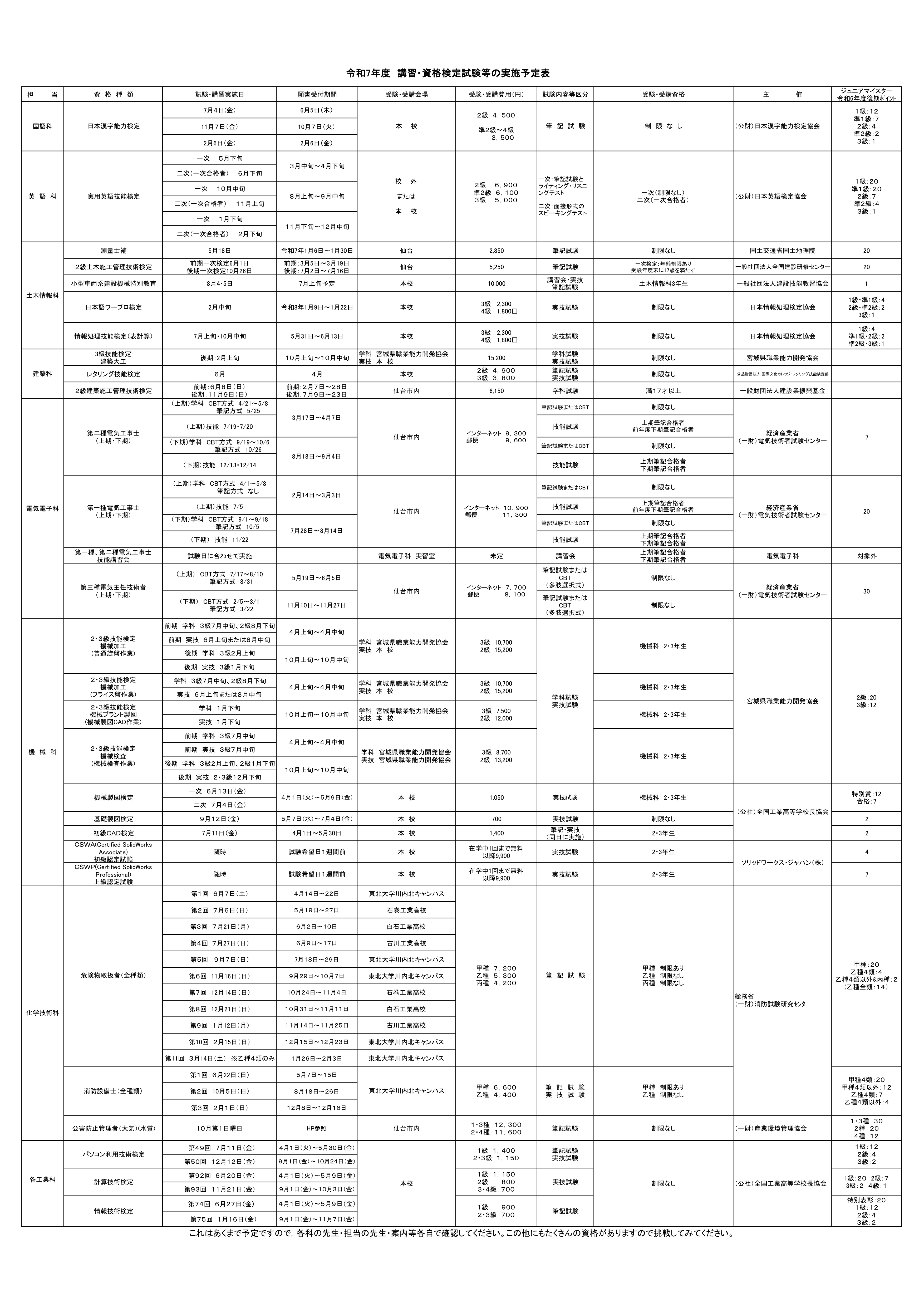 ※ 各科で取得可能な資格・検定については、各学科のページをご覧ください。